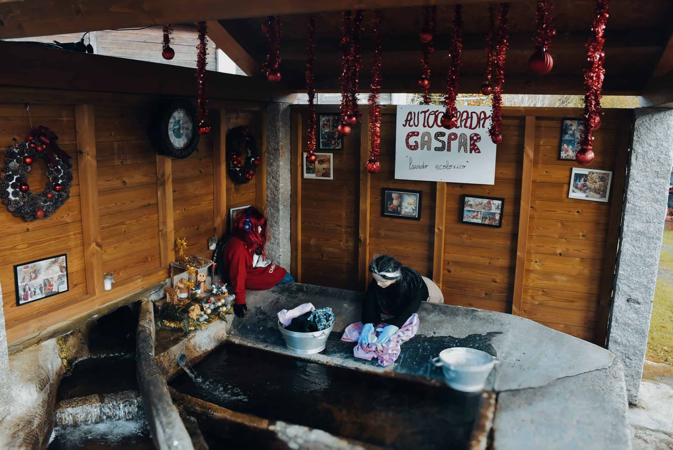 El pueblo cobra vida con decoraciones hechas a mano. Las casas, cada una con su temática, se visten de Navidad. Hay una que representa la morada del Apalpador, otra que recrea una taberna, mientras que en una pequeña cabaña han puesto un photocall para los más pequeños. El lavadero, ese lugar de reunión de los pueblos, también forma parte del recorrido, y ha sido decorado con esmero. Este año, además, han añadido un nuevo atractivo: la iluminación de un sendero que conduce a una cascada natural cercana, donde han creado un rincón inspirado en la figura de un pescador.