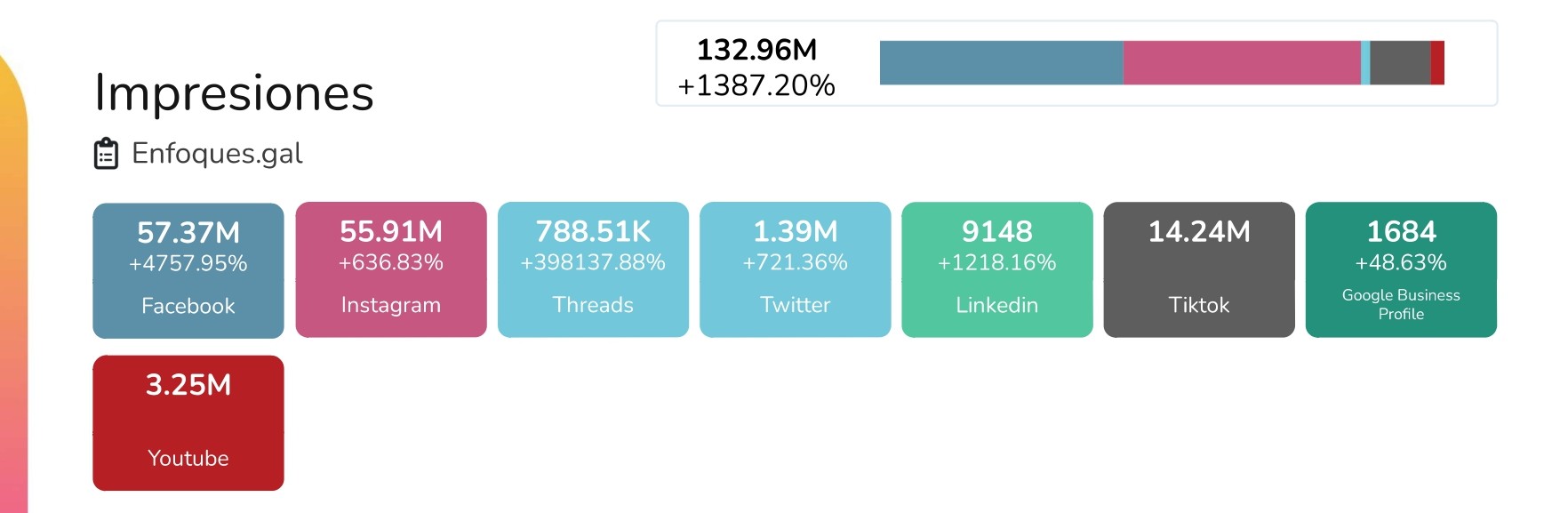 La evolución de las métricas refleja un cambio claro en el alcance y la capacidad de difusión del medio. En la actualidad, enfoques.gal supera los 96.000 seguidores acumulados en redes sociales, con Facebook e Instagram como principales motores de comunidad, pero con un crecimiento especialmente relevante en TikTok, plataforma en la que el medio se sitúa ya como el tercer medio gallego con más seguidores.