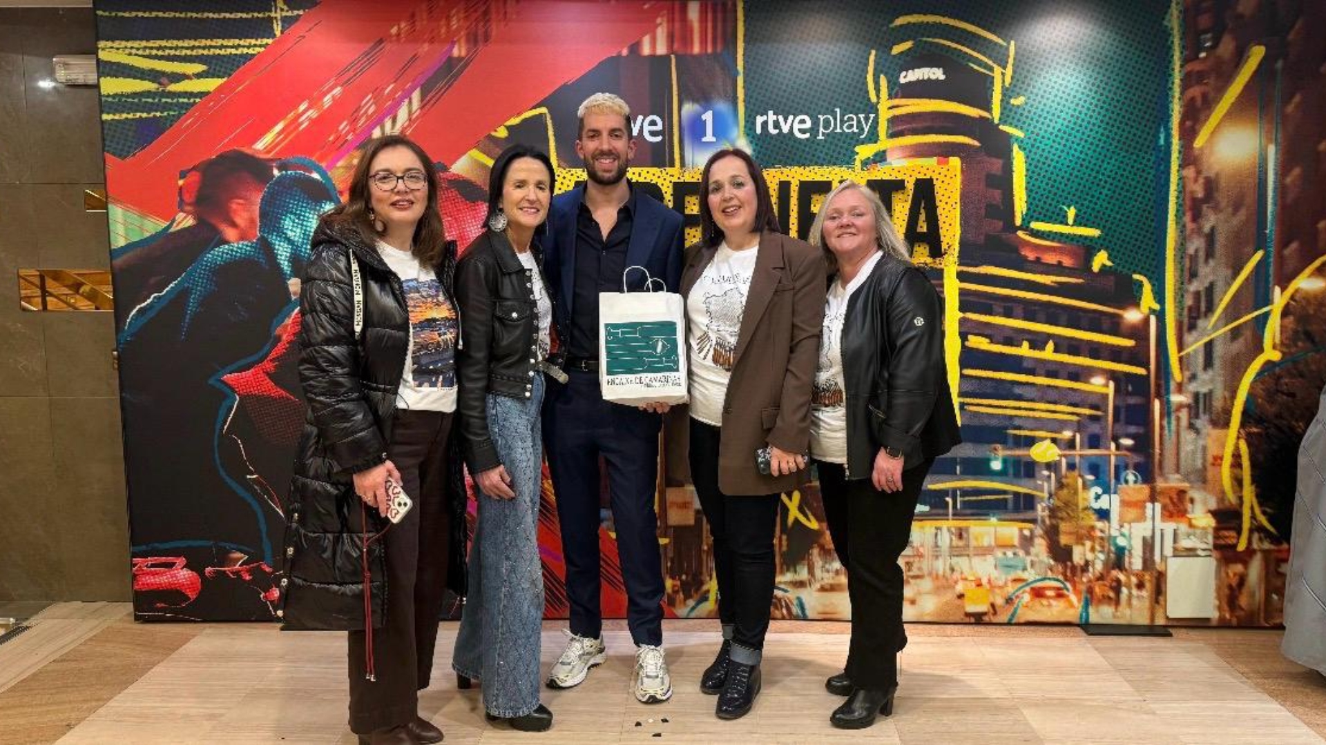 La Mostra do Encaixe también conquistó la pequeña pantalla. Una delegación encabezada por la alcaldesa visitó el programa ‘La Revuelta’, donde entregaron a David Broncano una camiseta oficial de la Mostra, firmada por Romeo Santos y Prince Royce. Un gesto que llevó el nombre de Camariñas a uno de los espacios televisivos con mayor audiencia entre el público joven.