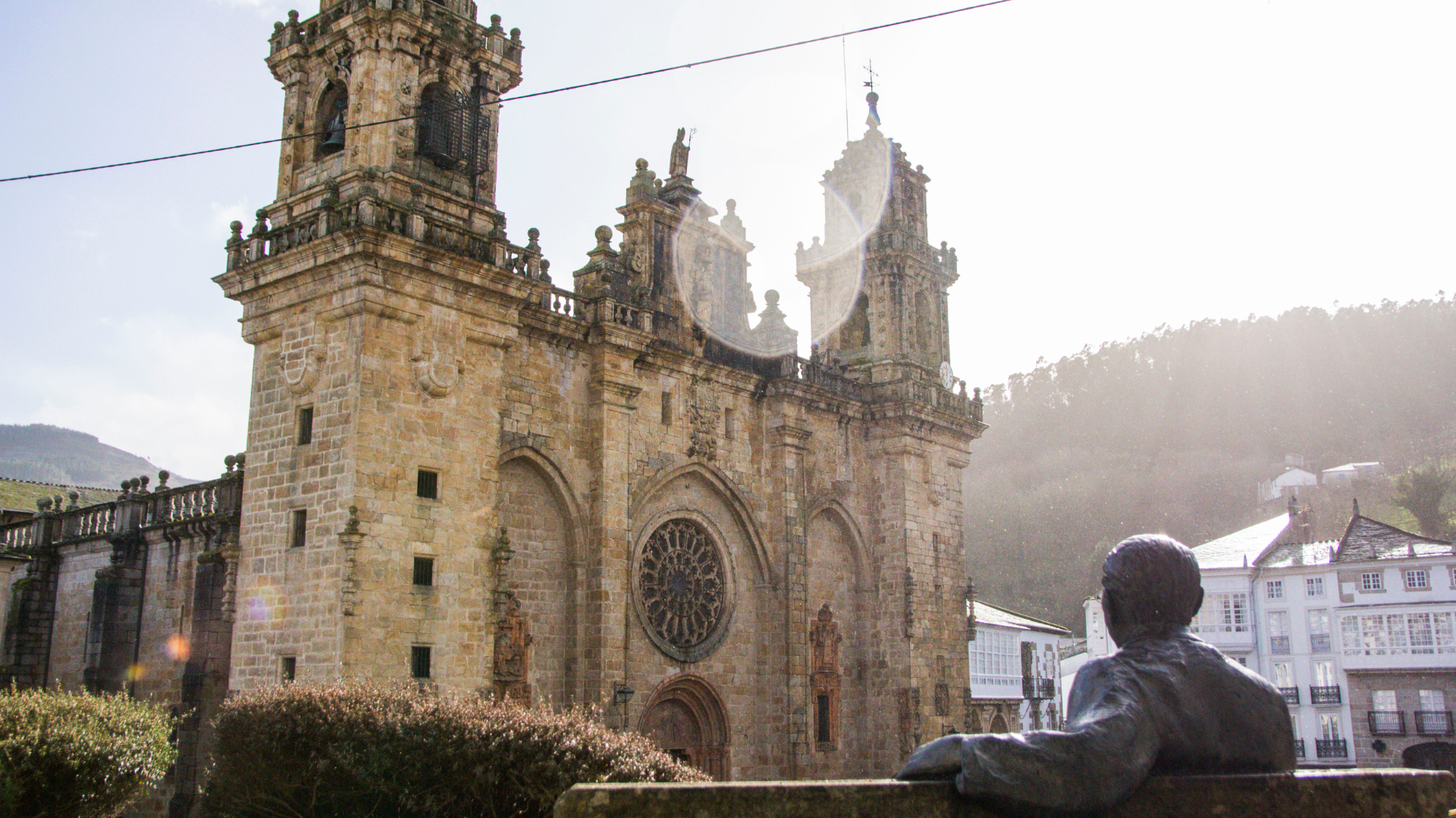 Mondoñedo es uno de esos lugares que parecen creados para el invierno. La catedral gótica iluminada, el eco de los pasos en la plaza de la Constitución, el olor a tarta recién horneada… todo invita a bajar el ritmo. Es un pueblo que se disfruta paseándolo: el barrio de Os Muíños, las casas con galerías, los soportales que protegen de la lluvia fina tan típica de diciembre.
