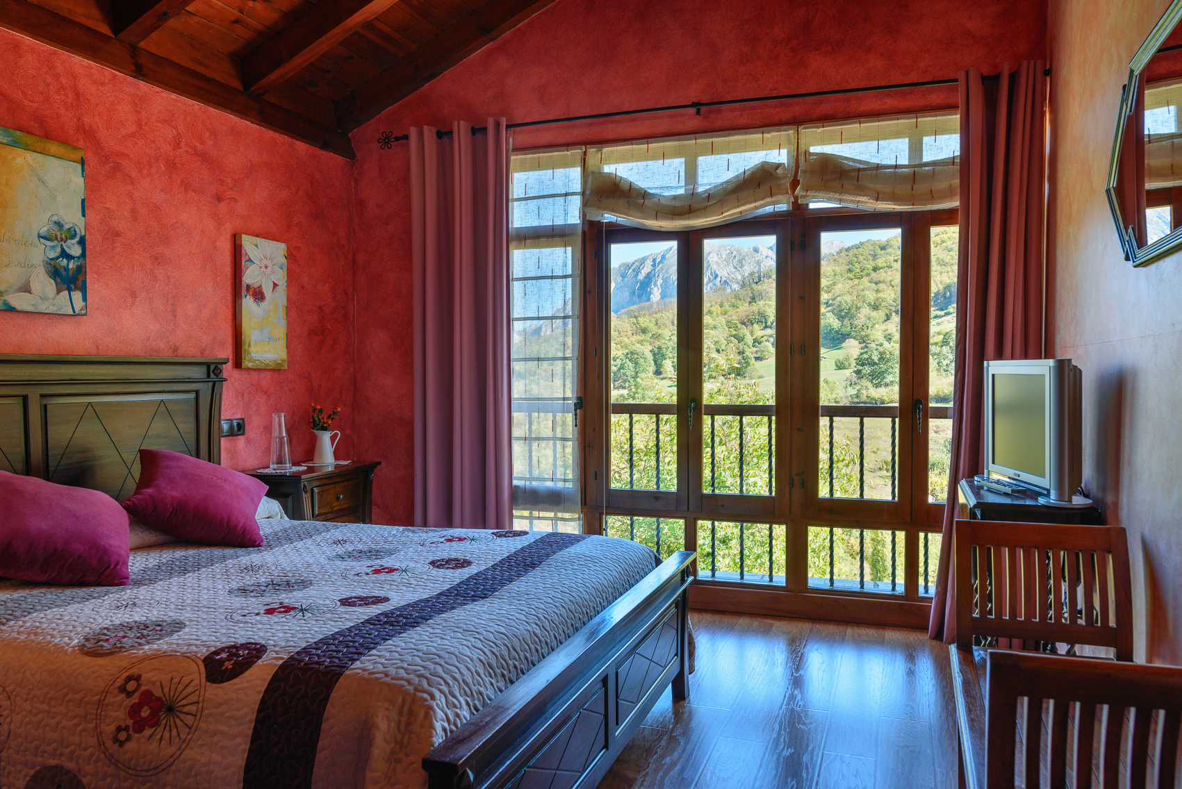 El establecimiento cuenta con tres apartamentos y dos estudios rurales en Teverga, uno de los destinos más representativos del turismo rural en Asturias. La ubicación es uno de sus puntos fuertes: está rodeado de naturaleza, muy cerca de la Senda del Oso y del Parque Natural Las Ubiñas-La Mesa, lo que permite tener a mano tanto la gran ruta del concejo como el paisaje de montaña que da sentido a toda la estancia. Los alojamientos disponen de balcón con vistas a las montañas, chimenea, conexión wifi gratuita y, en el caso de los apartamentos, espacios amplios con sala de estar, sofá, televisión con canales por cable, cocina equipada con nevera, microondas y cafetera, además de lavadora, lavavajillas y varios baños.