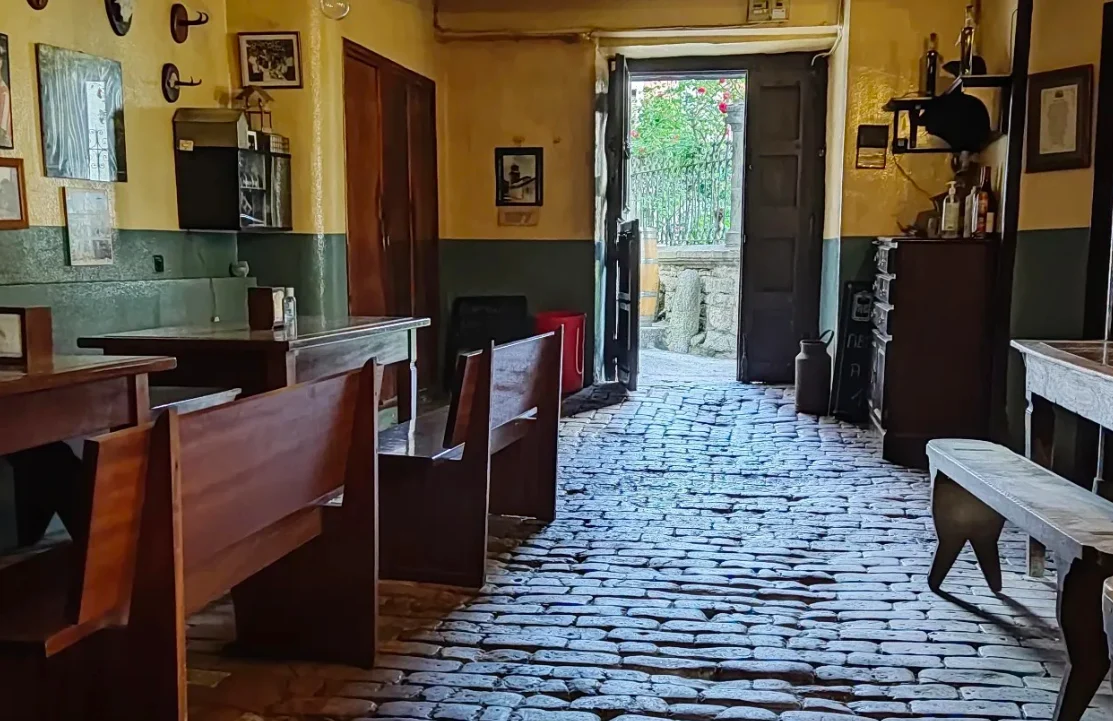 Si la mañana puede llevar al visitante hacia ese tipo de experiencia íntima y ligada a la tradición, la noche encuentra en Taberna Narciso otro de los lugares que mejor explican la identidad de Teverga. El local hunde sus raíces en 1830, cuando nació como Casa Manolón, un comercio de vinos a granel fundado por una familia vaqueira. Esa historia todavía se percibe en sus materiales y en su atmósfera: las vigas de madera, el suelo de ladrillo macizo desgastado por generaciones de partidas y tertulias y la barra de mármol que todavía conserva el poso del tiempo. No se trata de una taberna que juegue a parecer antigua. Lo es.