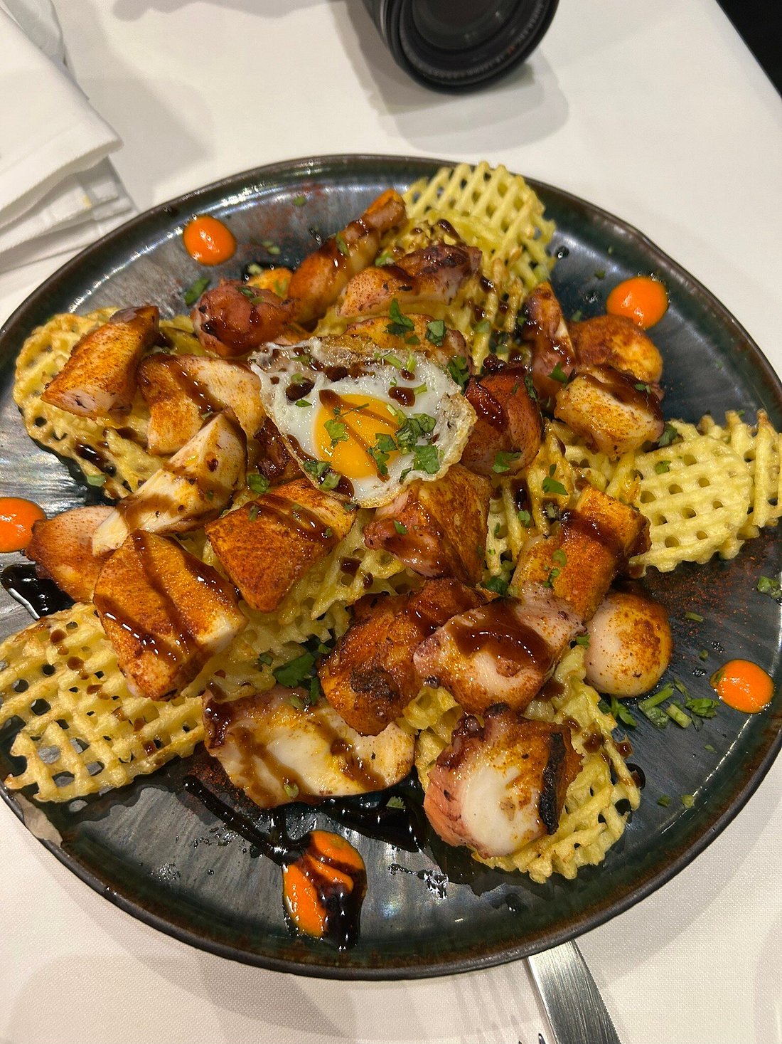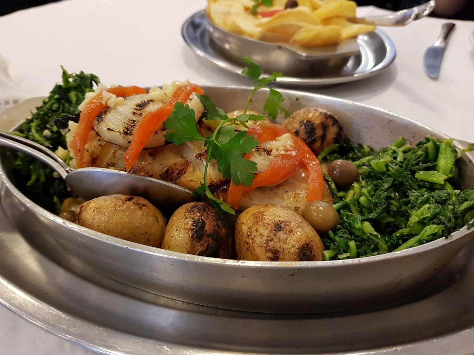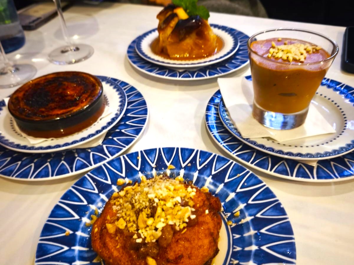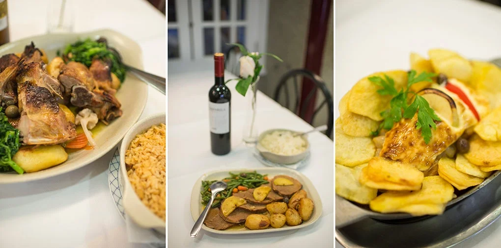 Desde las entradas —broa de milho, queijinhos saloios, chouriço asado o bolinhos de bacalhau— hasta los platos principales, todo aquí huele a cocina de casa. El arroz malandro de tamboril, meloso y generoso, es uno de sus platos estrella. También lo son el bacalao à Zé do Pipo, la cabritinha assada no forno o los rojões à moda do Minho. Y para rematar, los postres: leite creme con azúcar caramelizado, pudim de ovos o la célebre baba de camelo, una crema dulce y sedosa que forma parte del imaginario repostero portugués.